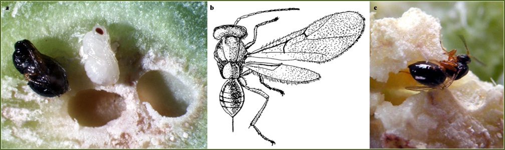 (Source Ditxon et al., 1986); c) Adult of D. kuriphilus